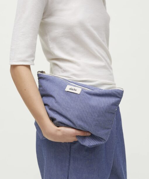 Aiayu´s skønne pouch i den smukke nye Letto stribe farve. Den lækre pouch er perfekt til kvinden, som altid mangler lidt opbevaring. Den smukke lille taske er super anvendelig, både som pusletaske, toilettaske, til, at samle de mest nødvendige ting og have med på farten. Smuk og elegant design. Lavet efter et zero waste program, hvor alt overskydende stof udnyttes. I skønt økologisk stribet stof. Lavet med omtanke for miljø og mennekser – ca. 31×25 cm og bunden er 7 cm.