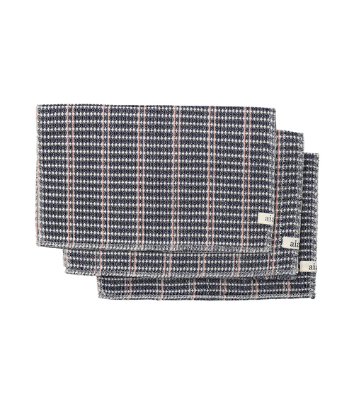 De lækreste klude i en super kompakt lækker vaflet 100% økologisk bomuld – stribet i off white og blå. Perfekte i køkkenet eller i badeværelset. Forkæl dig selv eller en du holder af. str.27×32 cm – 3-pack cloth.