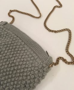 Den smukke Helen clutch har fået en ny søster. Den skønne Helen chain, som er den velkendte Helen clutch med en fin og elegant kæde monteret, så den er den fineste lille taske. Virkelig kærlighed for øjet og passer til en hver lejlighed. Helen tasken er 14×25 cm og lavet i den fineste baby lama uld. Den rummer fint både telefon, make-up og andre fornødenheder. Den er en uundværlig accessorie for den modeelskende kvinde. En Helen chain oser af personlighed og er i bedste kvalitet. Denne er smuk sart støvet grøn – Elm