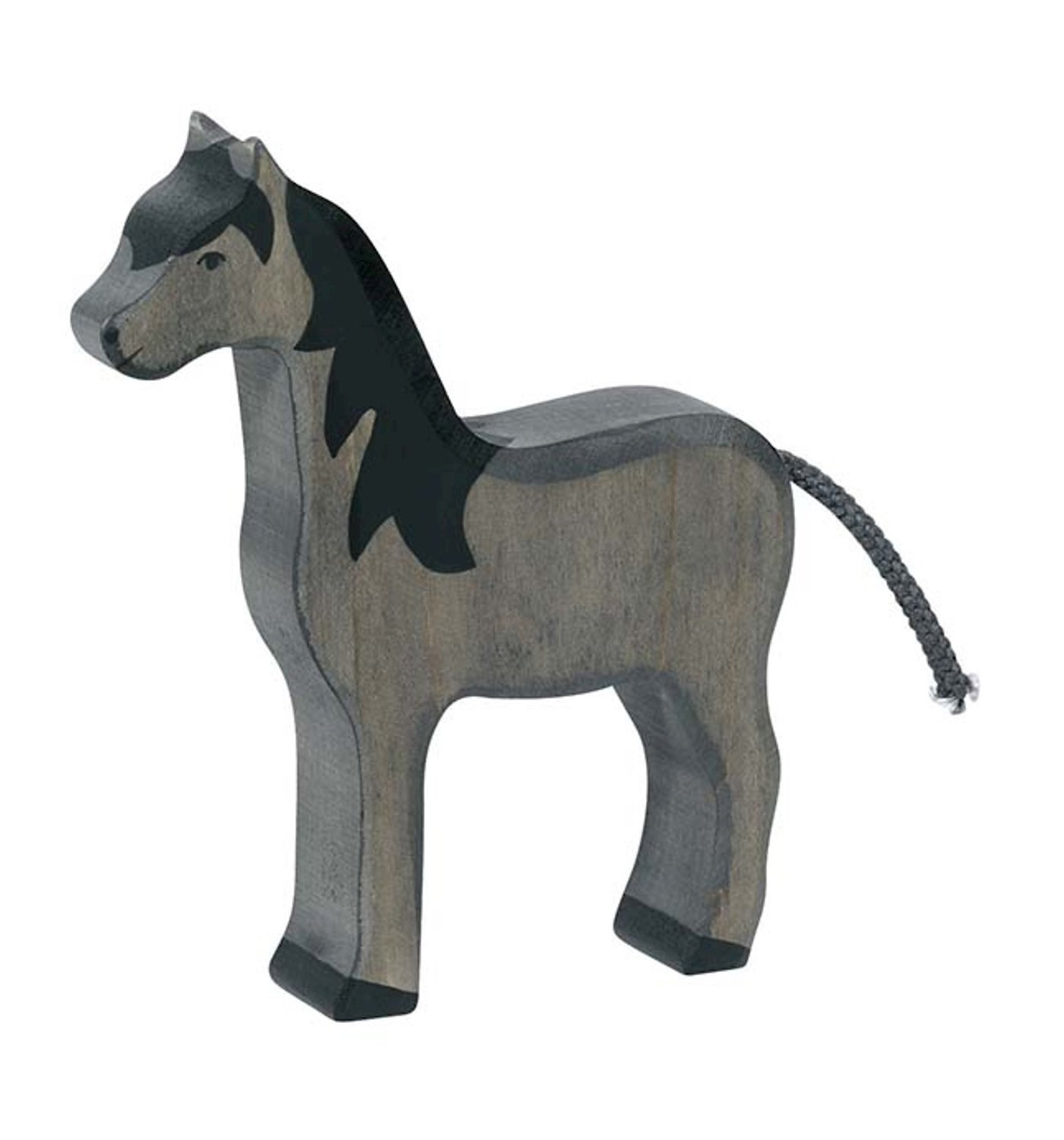 Smuk håndlavet og håndmalet hest – helt uden kemi og produceret i Europa. Hesten er perfekt til leg af både helt små og større børn og i sær hesteglade familier. Dyrene er af top kvalitet og holder generation efter generation. Alle Holztiger dyr er i smukke let duche farver og passer smukt ind i et hvert børneunivers. Hesten er ca. 12,9 x 2.9 x 15,3 cm