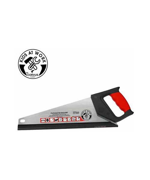 Den fineste junior sav i fantastisk kvalitet fra tyske Corvus. Den har tyngde, som en voksen fukssvans og har fine skarpe savtakker. Den er velegnet til, at save i træ eller plast materialer, som tagrende mm. Saven, er 41 cm lang og ligger perfekt i hånden. fra 5-14 år. Selve savbladet er 35 cm og kommer med beskyttelse skinne. En fantastisk første sav. Den er super god, at lære, at save med og et lækkert stykke værktøj. Så er dit barn glad ved, at være med i værkstedet eller elsker små bygge projekter, så er denne sav et must. For de helt små, er det smart, at starte med, at save i en skærekasse, hvor man kan save i 90 og 45 grader. Se også det fine profilerede træ i stave, hvor man nemt kan save sig små giraffer eller andre dyr. Virkelig god aktivitet til begynderne.
