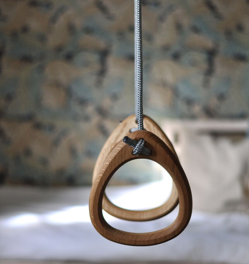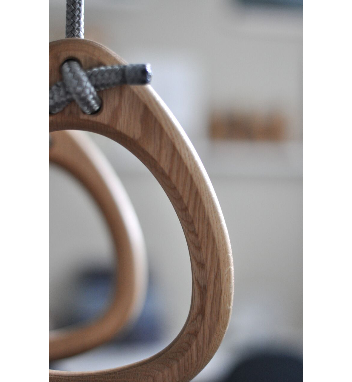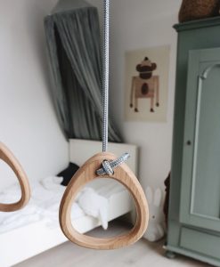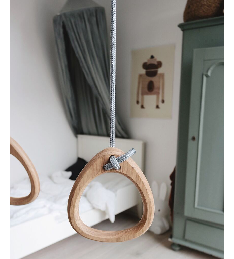 De bedste gaver, er aktive gaver. De smukke gymnastikringe – er ikke mindre end geniale, at have i hjemmet. Styrkende og motortisk udviklende for både stor og lille. De smukke ringe, kan bære en vægt helt op til 90 kg og kan derfor også bruges af voksne. De er sikre, at bruge og nemme, at justere, alt efter, hvem, som skal bruge dem. Gymnastikringe, er en sjov og social leg, men som nemt kan leges med alene. Kombiner dem med de smukke gynger og lav, et spændende legeunivers. De lækre ringe, er fremstillet i egetræ og er SÅ smukke og tidsløse, at de nemt kan bruges over hele huset og selvfølgelig også udendørs. De har et super godt greb, så de ligger godt i hånden og der er tænkt over detaljerne. Ringene leveres i æske – klar til brug og – de passer til en loftshøjde på 2-2,8 meter. Anbefales fra 3 år og frem. Hos little village people leveres ringene med 2 svingophæng, så du straks kan bruge ringene.