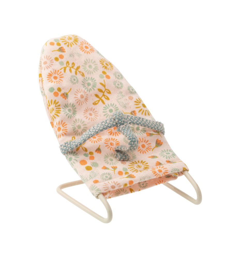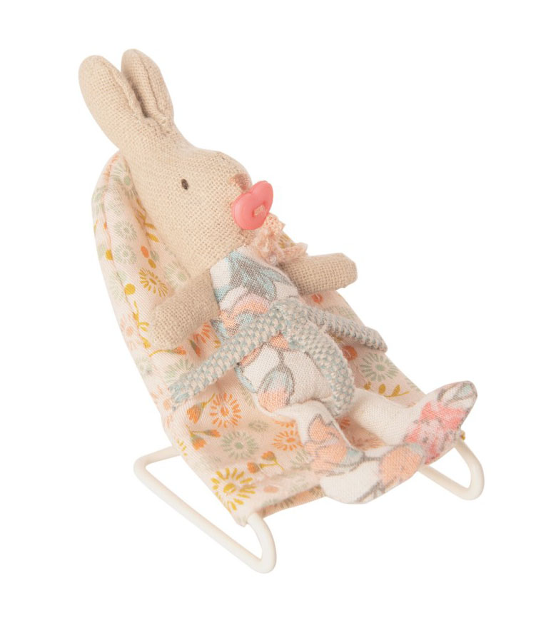 Den skønne Maileg skråstol, er lavet i metal og bomuld. Med denne skråstol er det let at få dine små venner til at sove. Basen er lavet af metal og dækket af det smukkeste prikkede stof. Den passer til kaniner i MY størrelsen såvel som babymus.