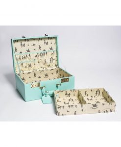 2 sortering – små fejl, på indvendig side af håndtag. Meget lidt og uden betydning. Den smukkeste gemme kuffert det lækreste mint-farvede læder og foret med det sødeste nostalgiske printet stof. Den er 18 cm høj, 36 cm bred og 26 cm dyb. Vær klar med minderne fra den første scanning til det lille bitte hospitals navnebånd – til det første par sko og frem mod skole alderen. Kufferterne er ruminddelt og har et lag, som kan tages ud i bunden – og en masse skønne lommer, som kan holde jeres minder beskyttet. Den perfekte gave til både barsel og dåb. Værdsættes for livet.