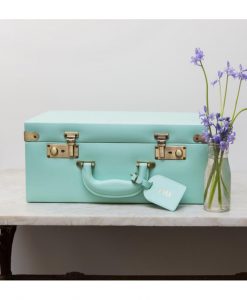 2 sortering – små fejl, på indvendig side af håndtag. Meget lidt og uden betydning. Den smukkeste gemme kuffert det lækreste mint-farvede læder og foret med det sødeste nostalgiske printet stof. Den er 18 cm høj, 36 cm bred og 26 cm dyb. Vær klar med minderne fra den første scanning til det lille bitte hospitals navnebånd – til det første par sko og frem mod skole alderen. Kufferterne er ruminddelt og har et lag, som kan tages ud i bunden – og en masse skønne lommer, som kan holde jeres minder beskyttet. Den perfekte gave til både barsel og dåb. Værdsættes for livet.