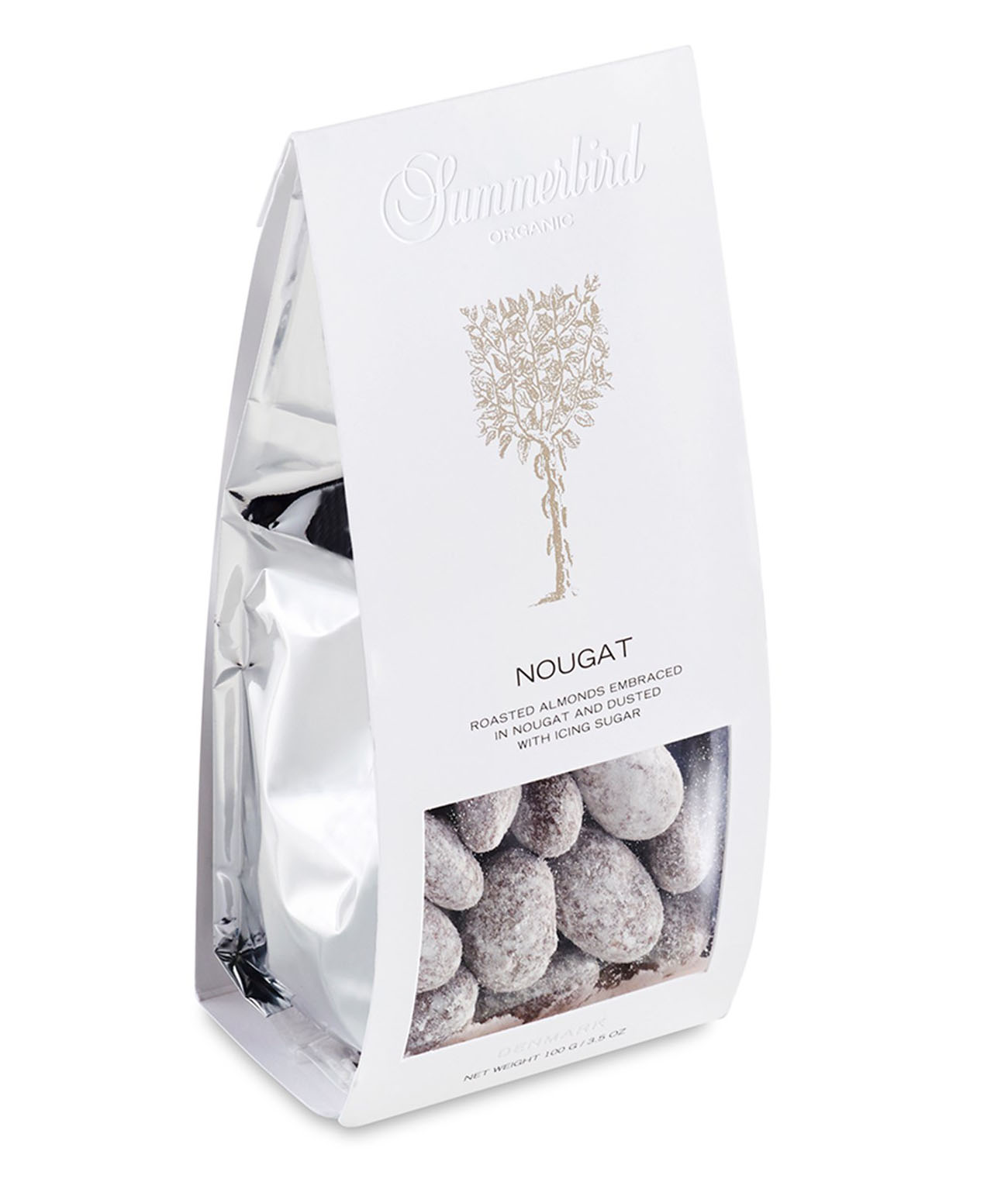100 gram økologiske let ristede spanske mandler, drageret med et tyndt lag nougat og mælkechokolade og afslutningsvis vendt i fnuglet florsukker. En Summerbird-klassiker, hvor råvaren, håndværket og traditionerne spiller hovedrollen.