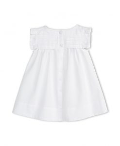 Denne kjole til de små piger, er simpelthen noget af det fineste. Petit Bateau´s ss15 er helt suveræn, hvad angår kjoler og tilbehør. Den lille smukke kjole i hvid har den fineste printning i stoffet (se close-up) og flotte læg ved bærestykket. Den er super nem og få af og på, da der er trykknapper hele vejen ned bagpå. Der er selvfølgelig også en helt særlig lille hat i samme print – og anden model til storesøster, så har du dåb eller andre festligheder, så er dette sæt perfekt. Kjolen er i 100% bomuld – med det skønne print i og vaskes ved 30%. Det er fransk og er lidt til den lille side