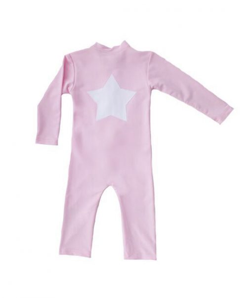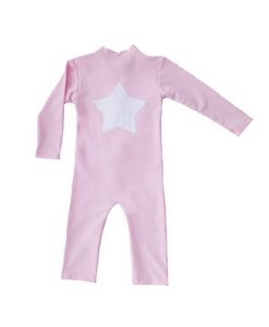 Det skønneste bodysuit fra danske Petit Crabe. Yder fuld beskyttelse med solen – i en lækker blød og åndbar kvalitet. Dragten har lange ærmer og ben. Den er særligt god til børn, som opholder sig meget i solen. Dragten er efter en badetur hurtigt tør igen. Dragten er perfekt til standen eller hvis man opholder sig i middagssolen i haven. Ideel til udenlandsferie. Petit Crabe er altid et godt valg, hvis man bade ofte udenfor. Dragten er øko-tex og designet er enkelt med en fin stjerne bagpå. Husk, at solhatten der passer til yder beskyttelse for ansigtet og kan være med i vandet.