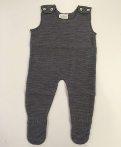 Den fineste lille sparkedragt i blød og ekstra fin merinould. Dragten er tyndere i strikken og rigtig skøn, at have på. Der er fødder i dragten, som er praktisk ved de helt små, da sokkerne, så hverken strammer eller falder af. Den er smukt udført og i højeste kvaliteten. Luksus til den lille også en særlig god barselsgave.